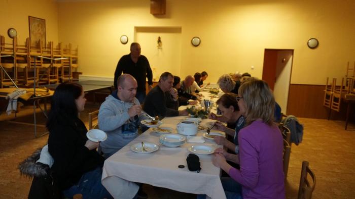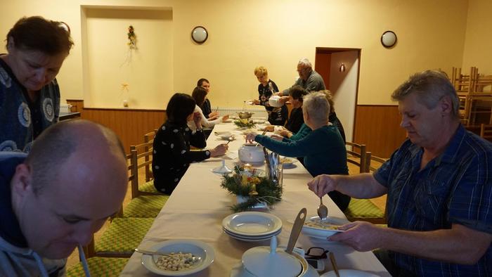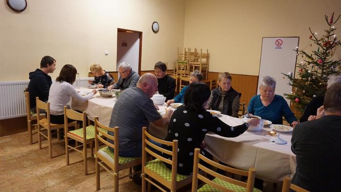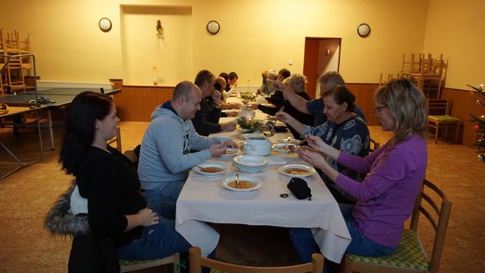 Oslava Vánoc a tradiční polévka, netradičně v prostorech obecního úřadu z důvodu špatného počasí.